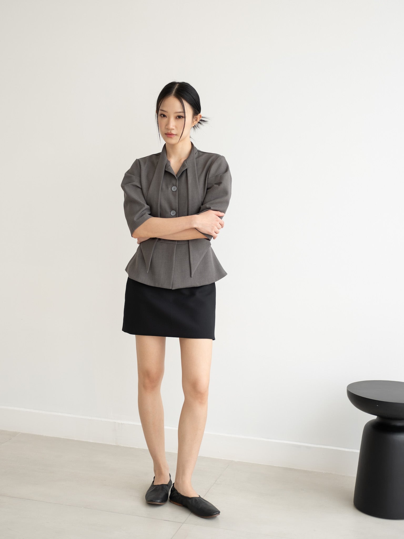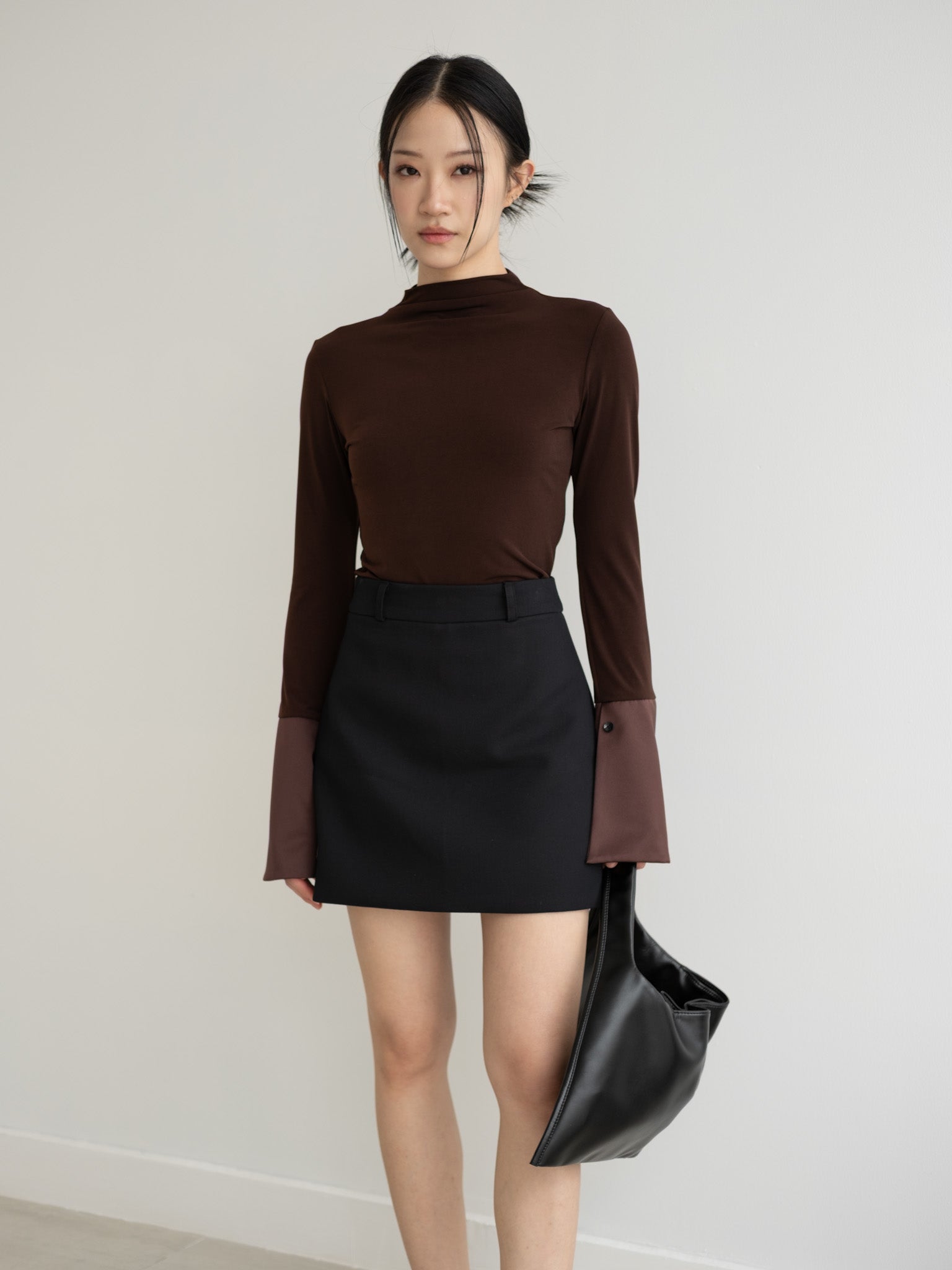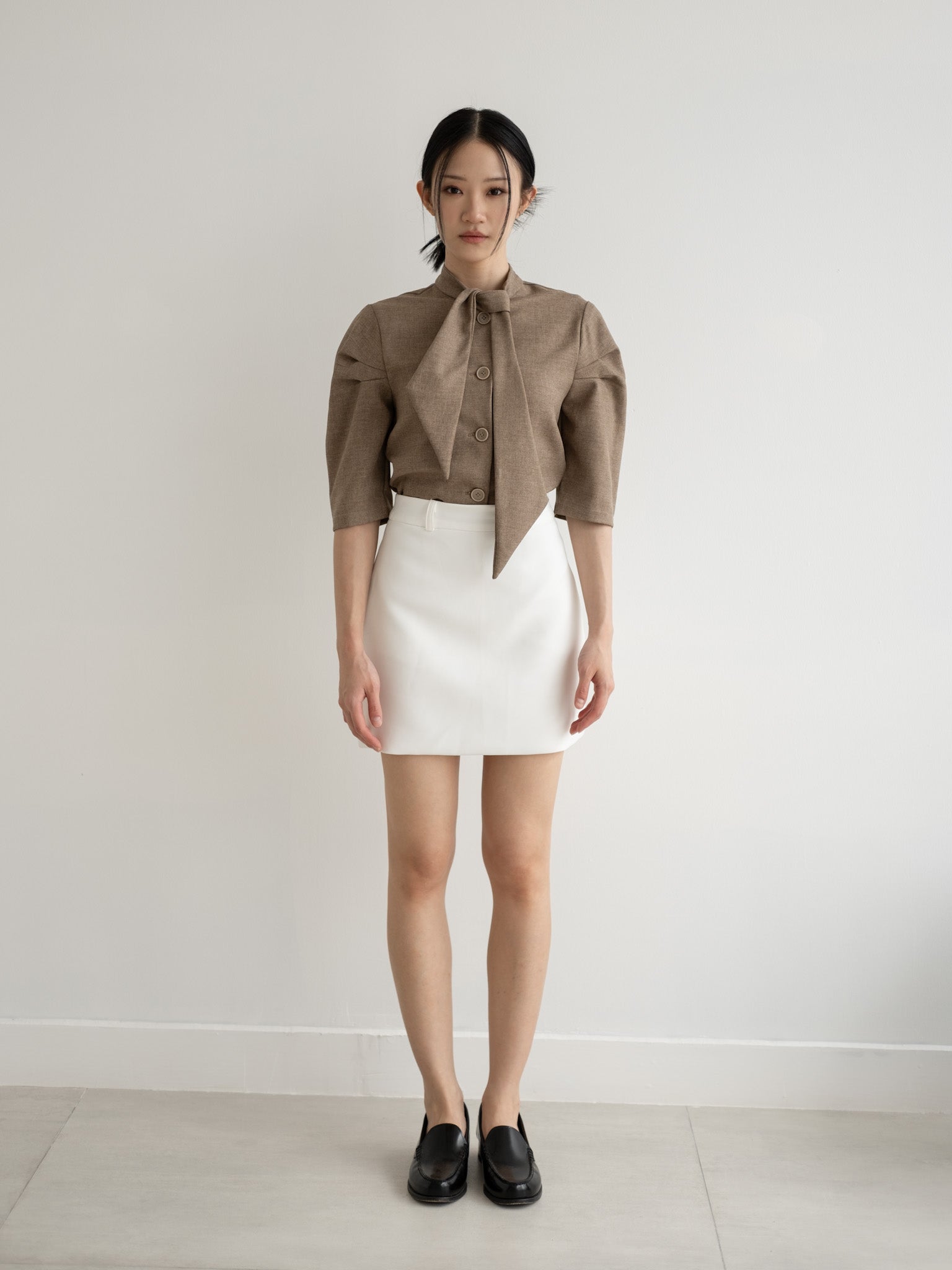 Classic high-waisted mini skirt with a slight A line silhouette.