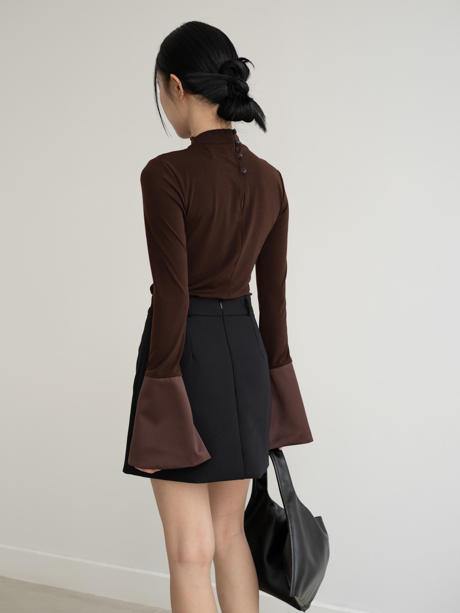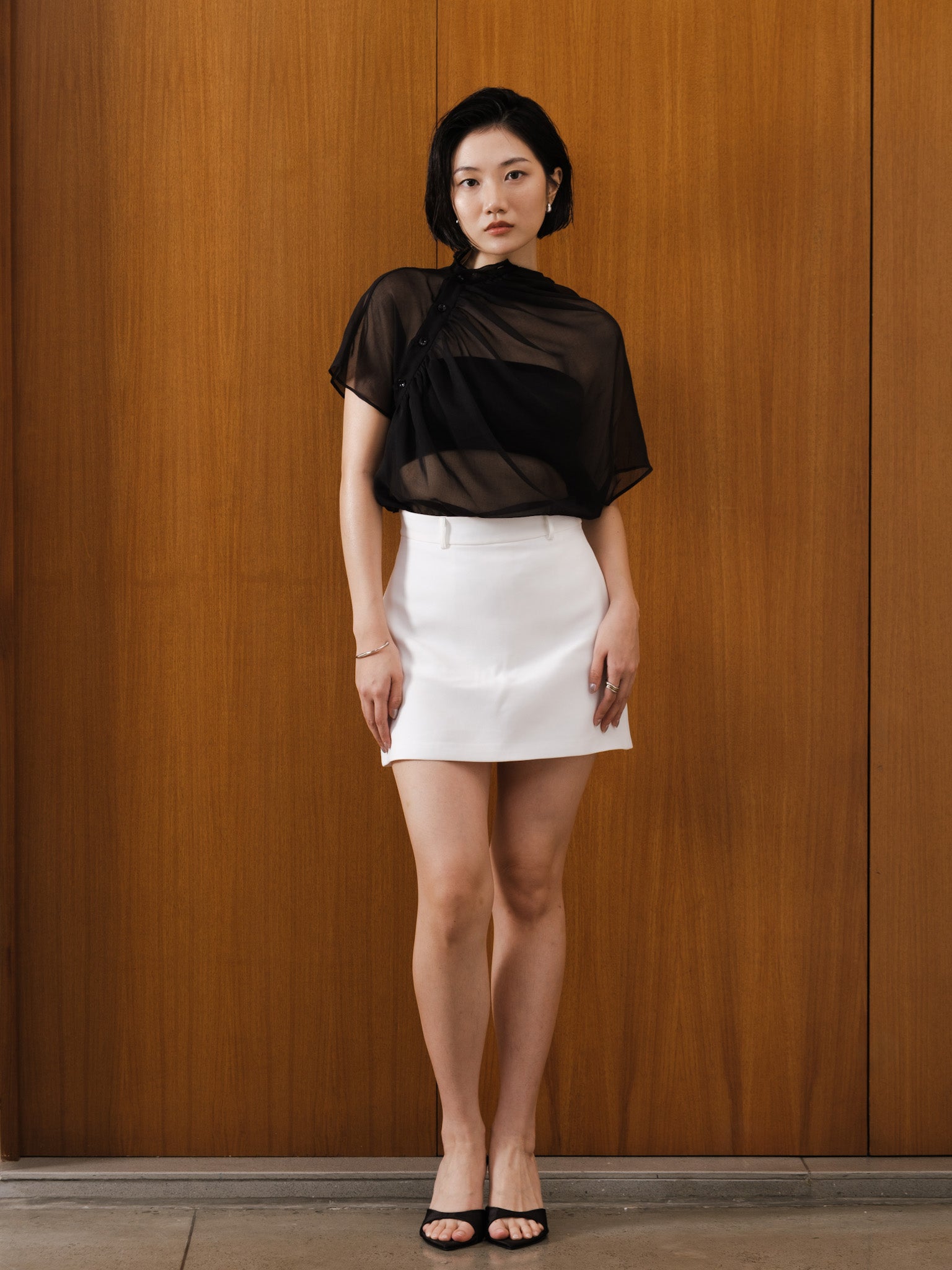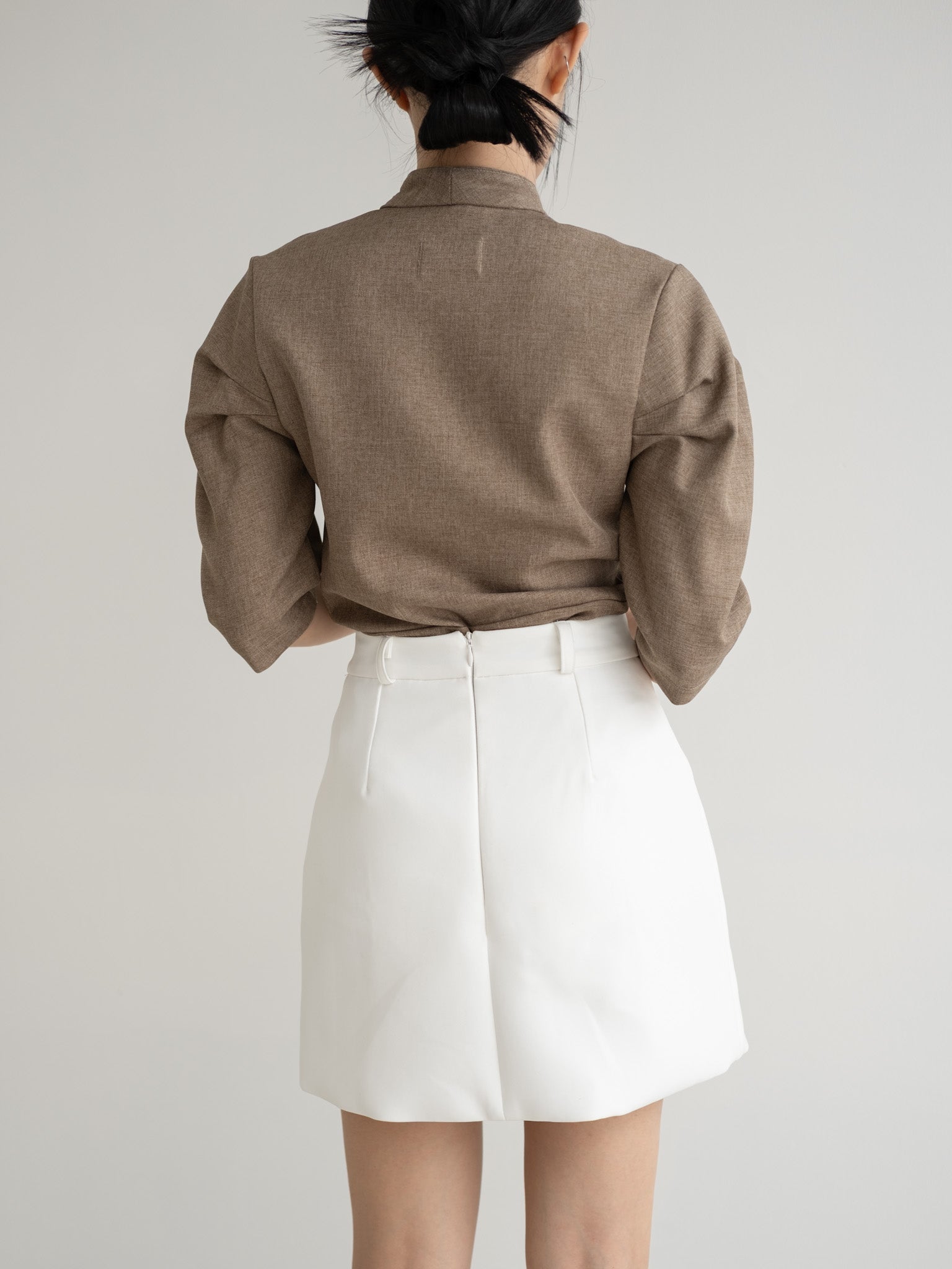 Classic high-waisted mini skirt with a slight A line silhouette.