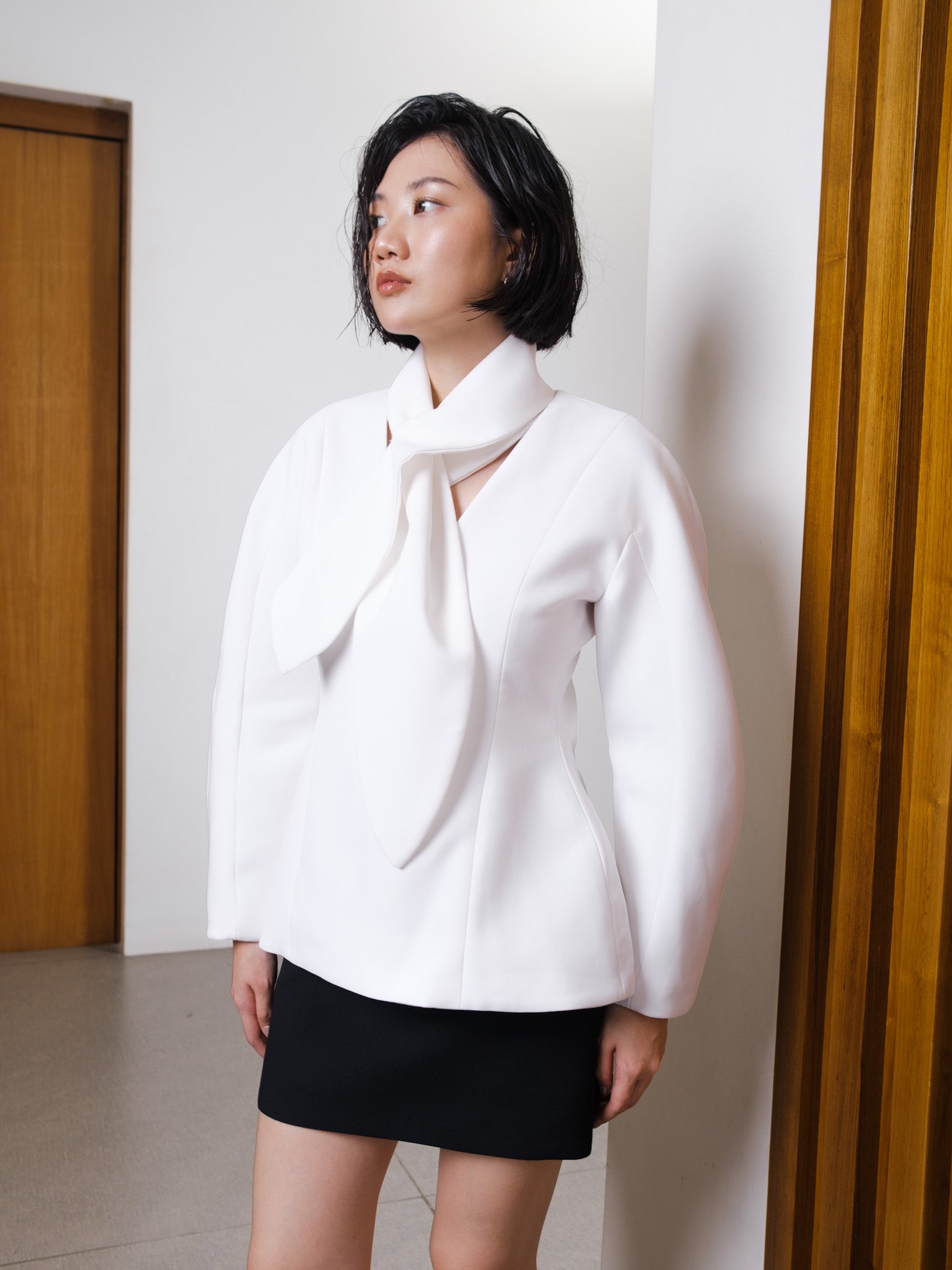 - Voluminous sleeve, snatch waist, with detachable scarf included